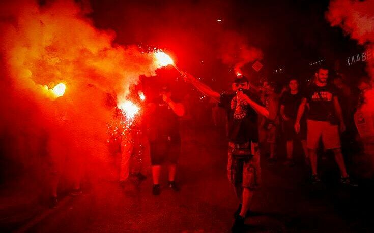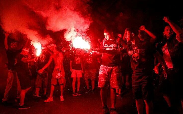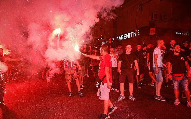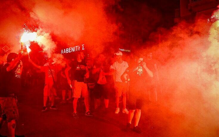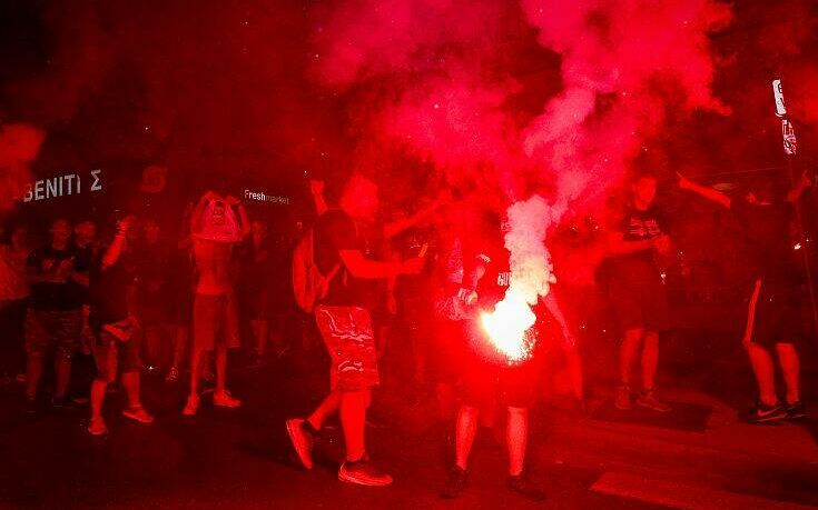 Φίλοι της ομάδας αμέσως μετά το σφύριγμα της λήξης του νικηφόρου αγώνα με την ΑΕΚ βγήκαν στο Πασαλιμάνι με καπνογόνα και συνθήματα.