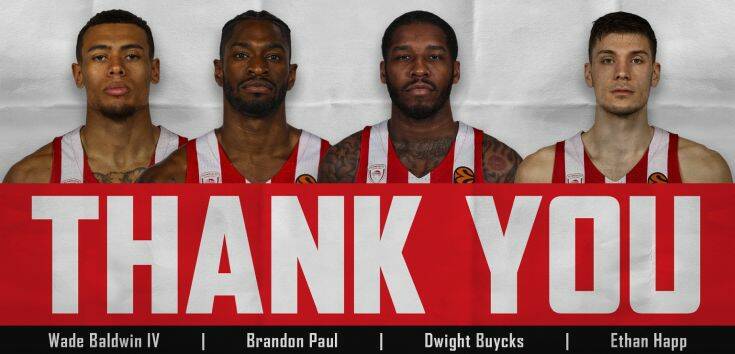 Πιο συγκεκριμένα, παρελθόν για τους Πειραιώτες αποτελούν οι Γουέιντ Μπόλντγουϊν, Μπράντον Πολ, Ντουάιτ Μπάικς και Ίθαν Χαπ, οι οποίοι θα αναζητήσουν πλέον τον επόμενο σταθμό της καριέρας τους.