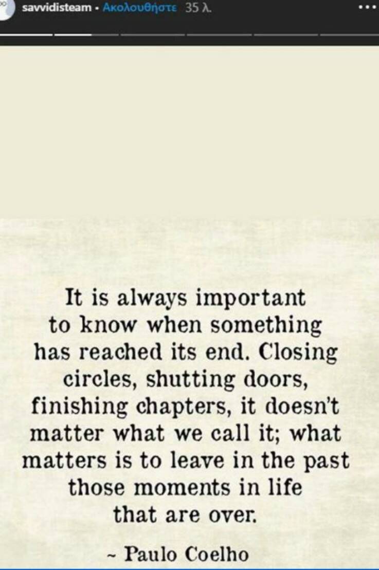 Με αυτό, όπως φαίνεται, συμφωνεί και ο Γιώργος Σαββίδης, αφού τοποθετήθηκε για το θέμα με ένα story στο Instagram, χρησιμοποιώντας το εξής γνωμικό του Πάολο Κοέλιο.