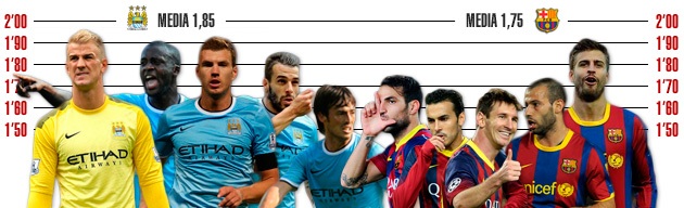 Το μέγεθος μετράει ή τα ακριβά αρώματα μπαίνουν σε μικρά μπουκαλάκια; Όπως και να’ χει, η σημερινή αναμέτρηση της Μαν. Σίτι με την Μπαρτσελόνα για τους «16» του Champions League θα είναι πέραν όλων των άλλων και μία αναμέτρηση ψηλών με κοντούς.