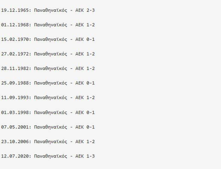 Οι 11 νίκες πρωταθλήματος της ΑΕΚ σε βάρος του Παναθηναϊκού εκτός έδρας: