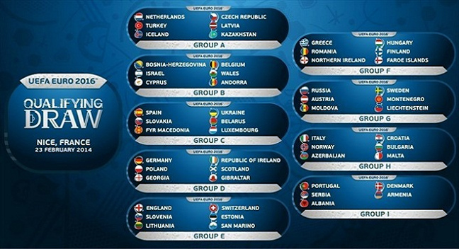Μετά την σχετική κλήρωση, που διεξήχθη στην Νίκαια, η εθνική Ελλάδας κληρώθηκε στον 6ο προκριματικό όμιλο του Euro 2016, με αντιπάλους τα Νησιά Φερόε, την Βόρεια Ιρλανδία, την Φινλανδία, την Ρουμανία και την Ουγγαρία.