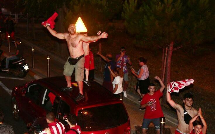 Οι φίλοι του Ολυμπιακού συνόδευαν το πούλμαν σε όλη τη διαδρομή μέχρι το Πασαλιμάνι, εκεί όπου τους περίμενε το συγκεντρωμένο πλήθος.