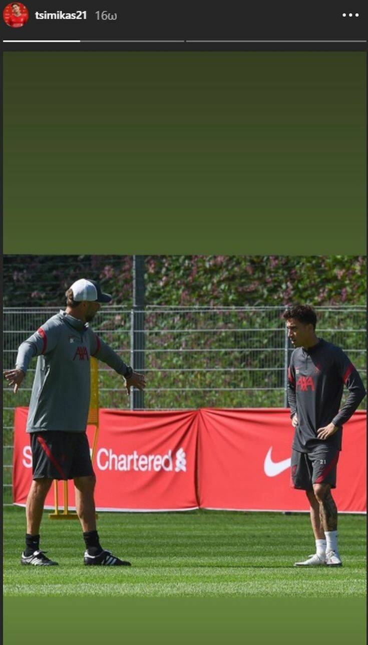 Στα social media ανάρτησε μια φωτογραφία με μια από τις στιγμές που ο Γιούργκεν Κλοπ του δίνει οδηγίες και φυσικά όταν του μιλάει ο Γερμανός, ο Τσιμίκας φροντίζει να ρουφάει σαν σφουγγάρι όλα όσα του λέει ο κόουτς προκειμένου να βελτιωθεί…
