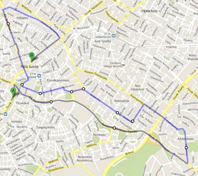 Η διαδρομή που θα ακολουθηθεί είναι: Λεωφόρος Ηρακλείου (Βαγόνι Προσκόπων), Εθνικής Αντιστάσεως, Καποδιστρίου, Παναιτώλιο, Κασταμονής, Ναυάρχου Νοταρά, Βυζαντίου, Εμμανουήλ Παππά, Κυδωνιών, Χρισοστόμου Σμύρνης, Διονυσίου Σωλωμού, Ελευθερίου Βενιζέλου, Αλέκου Παναγούλη, Πλατεία Σημηριώτη (Λ.Ηρακλείου)