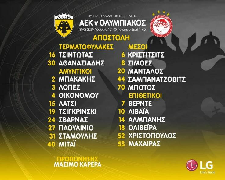 Η προετοιμασία της ΑΕΚ για τον τελικό του κυπέλλου ολοκληρώθηκε, με τον Μάσιμο Καρέρα να ανακοινώνει την αποστολή.