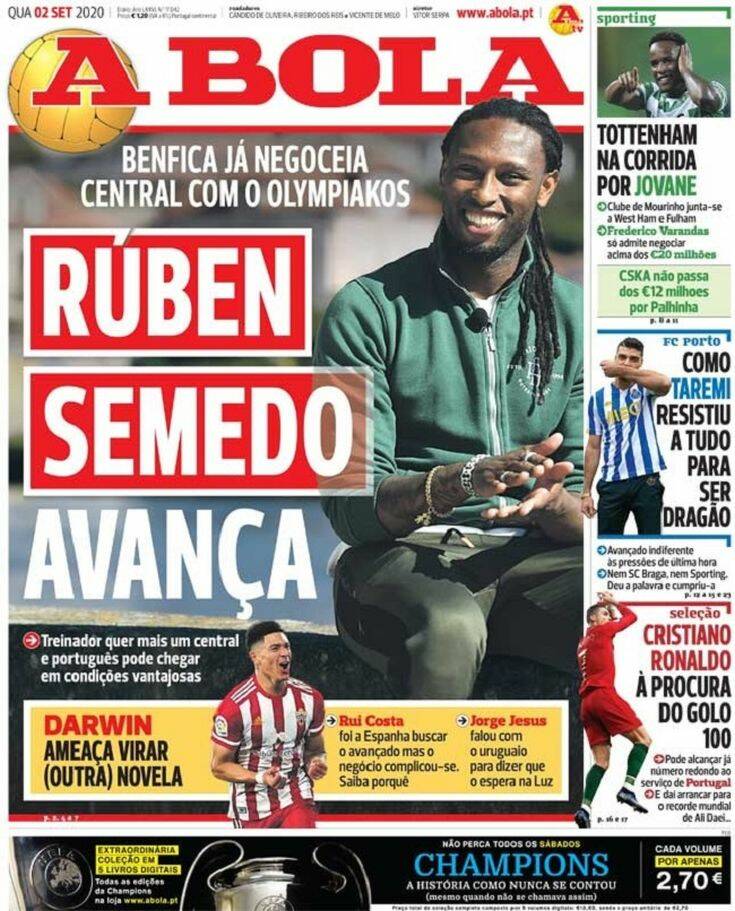 Το ενδιαφέρον της Μπενφίκα για τον Ρούμπεν Σεμέδο δεν φαίνεται να έχει υποχωρήσει. Το αντίθετο μάλιστα, εάν λάβει κανείς υπόψη το πρωτοσέλιδο της Α’ Bola, που έχει ως βασικό της θέμα τον στόπερ του Ολυμπιακού.