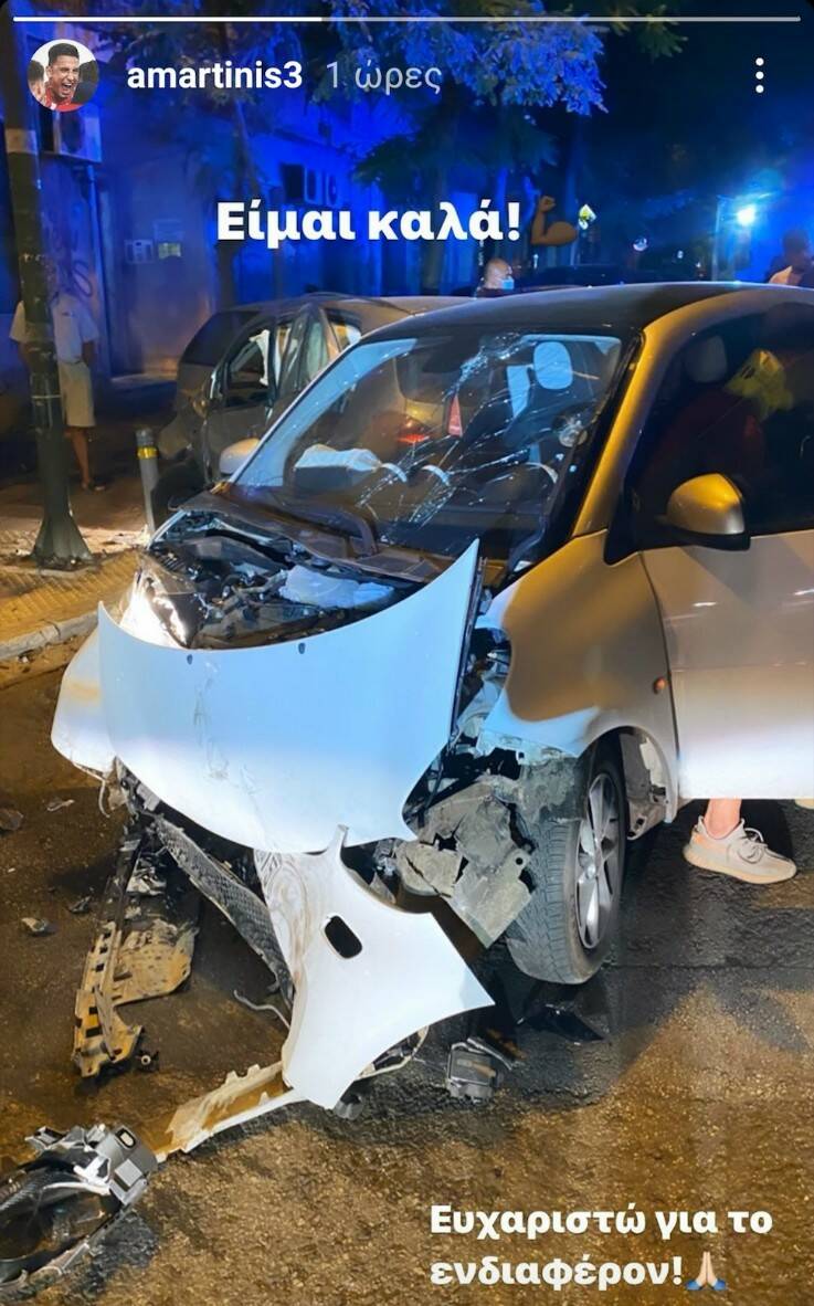 Σε τροχαίο ατύχημα ενεπλάκη ο Απόστολος Μαρτίνης αλλά είναι καλά, παρά τις σοβαρές ζημιές στο αυτοκίνητο.