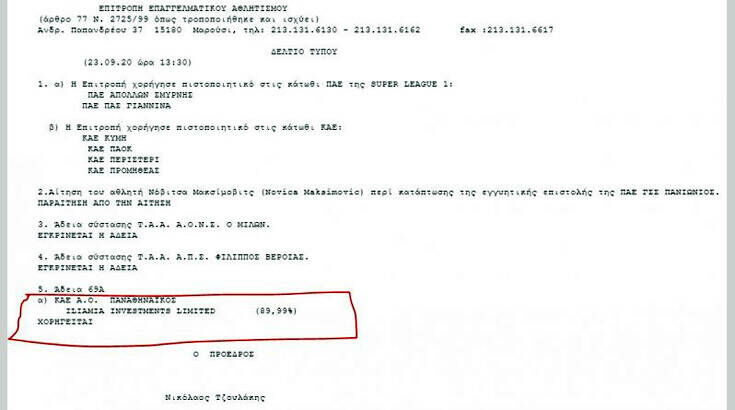 Η Επιτροπή Επαγγελματικού Αθλήτισμου ενέκρινε την μεταβίβαση της ΚΑΕ Παναθηναϊκός ΟΠΑΠ από τον Μάνο Παπαδόπουλο ξανά στον Δημήτρη Γιαννακόπουλο.
