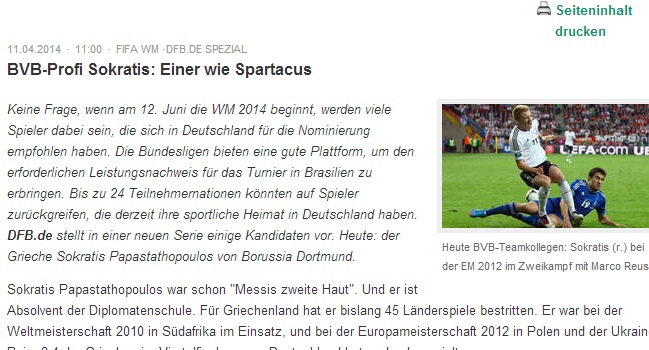Η ιστοσελίδα της γερμανικής ομοσπονδίας φιλοξενεί αφιέρωμα στον Σωκράτη Παπασταθόπουλο ως εκπρόσωπο της Ελλάδας εν όψει Μουντιάλ.