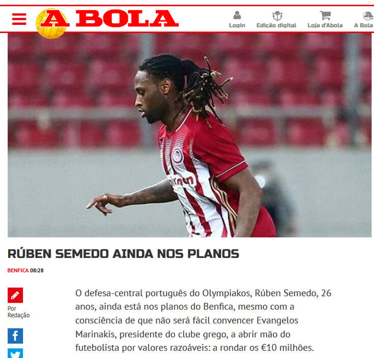 Και προστίθεται: «Έπειτα από ημέρες/εβδομάδες δύσκολων διαπραγματεύσεων, η Μπενφίκα έχει φρέσκα λεφτά, μεγάλη θέληση, αλλά λίγο χρόνο, έτσι πρέπει να επανέλθει ξανά σε μία διαδικασία που πρέπει να κλείσει μέχρι τις 6 Οκτωβρίου. Ο Σεμέδο ενθουσιάζει τον Ζέσους και είναι Πορτογάλος. Η ομάδα μόλις έχασε έναν Πορτογάλος και η παρουσία ξένων είναι ανησυχητική».