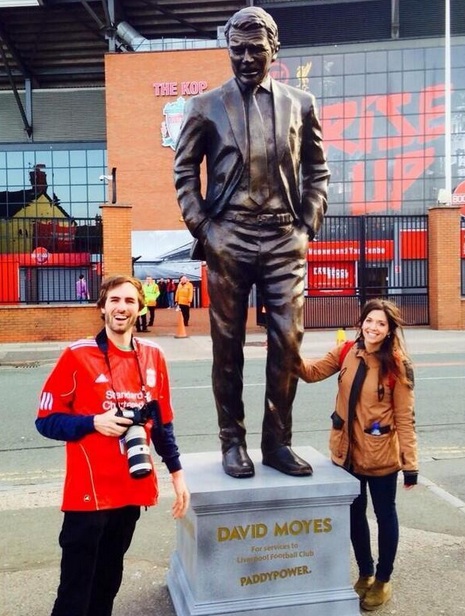 «Ντέιβιντ Μόγες, για τις υπηρεσίες του στη Λίβερπουλ», ανέφερε η επιγραφή στο άγαλμα, δίπλα στο οποίο πόζαραν φίλοι των «reds».