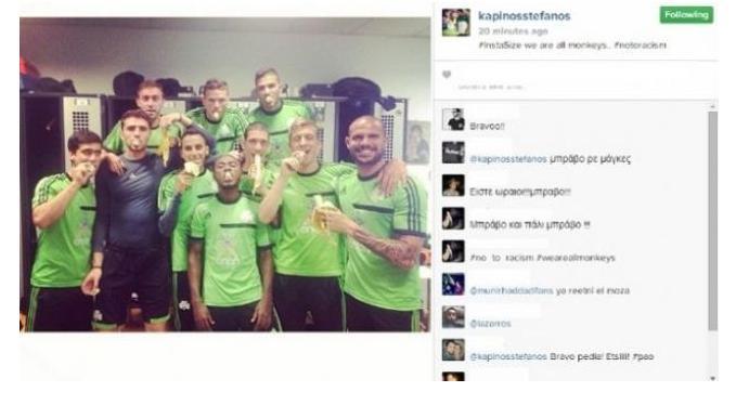 Η κίνησή του βρήκε γρήγορα μιμητές και ανάμεσα σε αυτούς είναι και ποδοσφαιριστές του Παναθηναϊκού που φωτογραφήθηκαν με τη δική τους μπανάνα και ο Στέφανος Καπίνο ανέβασε το αποτέλεσμα στο instagram με το μήνυμα «we are all monkeys… No to racism».