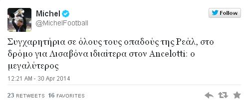 Με την ψυχή του πρέπει να πανηγύρισε ο Μίτσελ την πρόκριση της Ρεάλ Μαδρίτης στον τελικό του Champions League, ύστερα από την νίκη (4-0) μέσα στην έδρα της Μπάγερν Μονάχου.