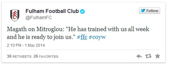 Πολύ πιθανή μοιάζει η επανεμφάνιση του Κώστα Μήτρογλου στην Πρέμιερ Λιγκ, ύστερα από περίπου δύο μήνες! Όπως επιβεβαίωσε στη σημερινή συνέντευξη Τύπου ο Φέλιξ Μάγκατ, ο διεθνής φορ προπονείται κανονικά εδώ και μια εβδομάδα, δεν αισθάνεται πλέον ενοχλήσεις και είναι πιθανό να ενισχύσει τις προσπάθειες της Φούλαμ το Σάββατο απέναντι στη Στόουκ.