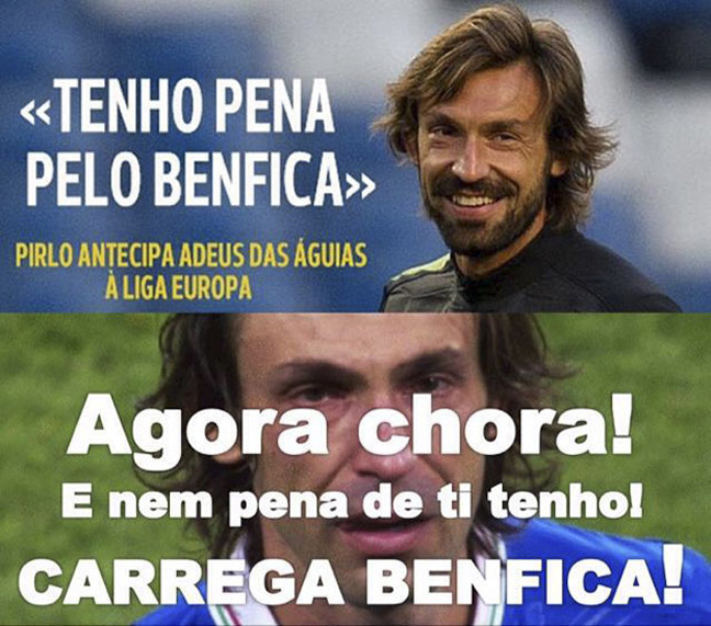 Από χθες τα μεσάνυχτα οι οπαδοί των μπενφικίστας, οι οποίοι δεν ξέχασαν το παραπάνω σχόλιο του Αντρέα Πίρλο μετά την κλήρωση, κατέκλυσαν τον λογαριασμό του Ιταλού μέσου με μηνύματα και την δική τους απάντηση στην τότε δήλωσή του.