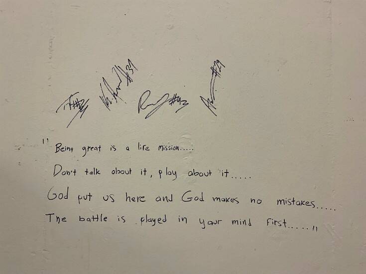 Ενα ξεχωριστό μήνυμα άφησε στα αποδυτήρια του Σταδίου Ειρήνης και Φιλίας ο Γιάννης Αντετοκούνμπο με τα αδέρφια του.