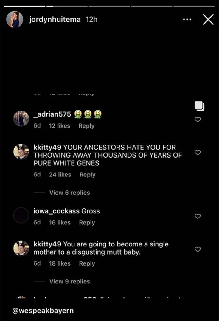 Ωστόσο λίγο αργότερα, η επίσης παίκτρια ποδοσφαίρου, αγαπημένη του, δημοσίευσε μια ιστορία με μερικά επαίσχυντα ραστιστικά σχόλια προς το πρόσωπό τους.