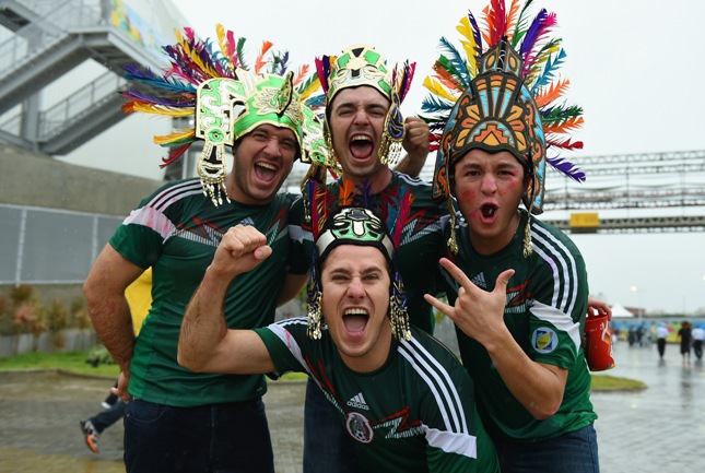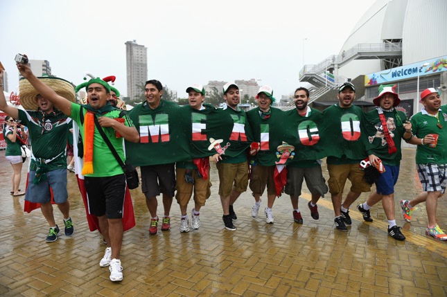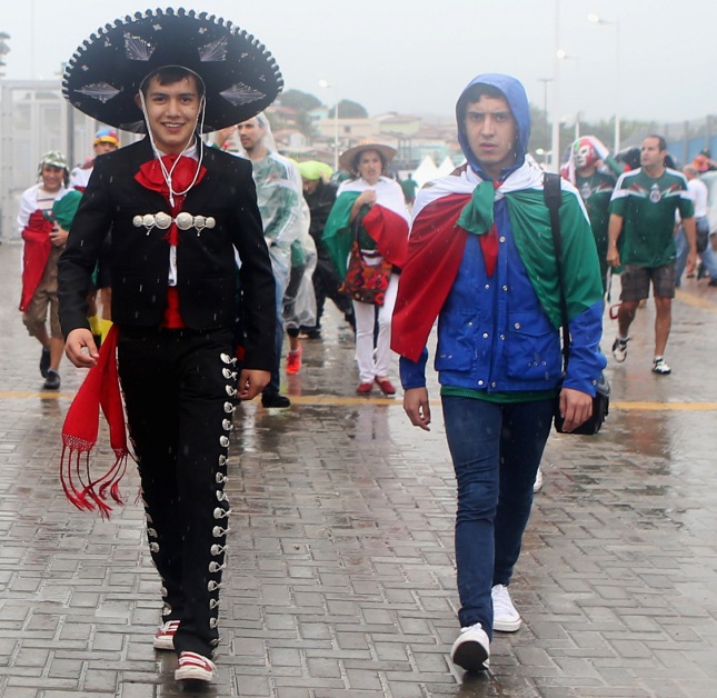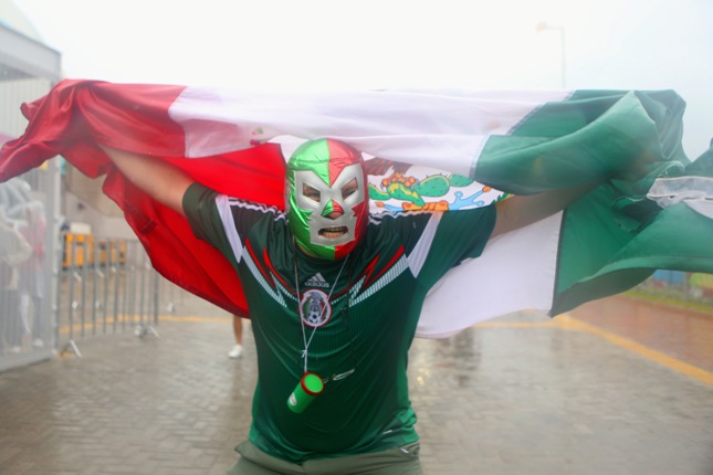 Αυτό θα πει «δυναμικό παρών»! Οι Μεξικάνοι προκάλεσαν με κάθε τρόπο τα φωτογραφικά φλας στο ματς της ομάδας του με το Καμερούν, παρά τη δυνατή βροχή που ξέσπασε στο Νατάλ.