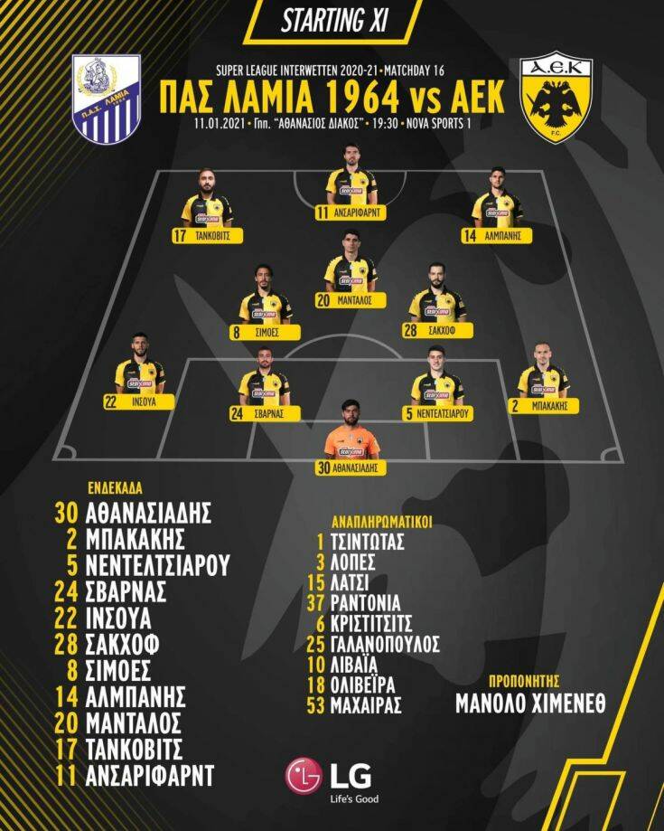 Ο Μανόλο Χιμένεθ άφησε για δεύτερο σερί ματς τον Μάρκο Λιβάια στον πάγκο της ΑΕΚ για τον εκτός έδρας αγώνα της 16ης αγωνιστικής της Super League 1 στη Λαμία με αντίπαλο την τοπική ομάδα. Στις βασικές επιλογές του Ανδαλουσιανού τεχνικού δεν συμπεριλαμβάνεται ούτε ο Νέλσον Ολιβέιρα.