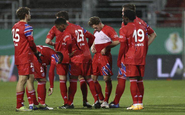 Η κάτοχος του περσινού τροπαίου (είχε κάνει το τρεμπλε κατακτώντας παράλληλα το πρωτάθλημα και το Champions League), παρατάχθηκε με πολλές αλλαγές στη σύνθεσή της και το… πλήρωσε ακριβά. Η Μπάγερν προηγήθηκε δύο φορές με τα γκολ των Γκνάμπρι (14′) και Σανέ (48′), όμως η Χολστάιν είχε ισάριθμες «απαντήσεις» με τους Μπάρτελες (37′) και Βαλ (στο 5ο λεπτό των καθυστερήσεων), οδηγώντας τον αγώνα στην παράταση κι ακολούθως στη «ρώσικη ρουλέτα» των πέναλτι.