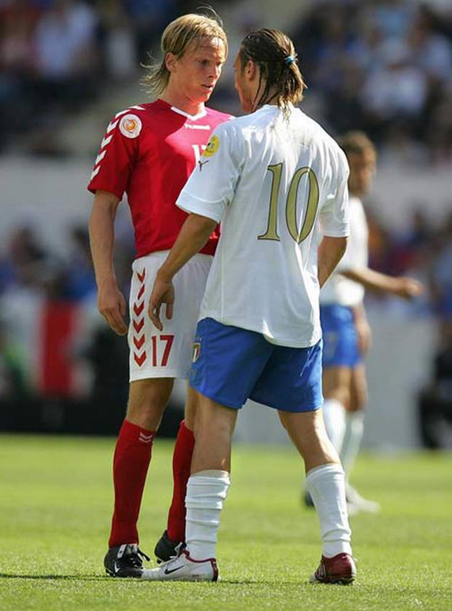 Ο Δανός Christian Poulsen έγινε ο αποδέκτης της υγρής διαμαρτυρίας του Ιταλού στο Ευρωπαϊκό του 2004, όταν ο στράικερ της Ρόμα τον έφτυσε και τιμωρήθηκε με αποκλεισμό 3 αγώνων. Στο ίδιο μάλιστα ιστορικό για μας τουρνουά, ο Alexander Frei της Ελβετίας τιμωρήθηκε με την ίδια ποινή όταν έφτυσε στον λαιμό τον Στίβεν Τζέραρντ στη νίκη των «Λιονταριών» με 3-0…
