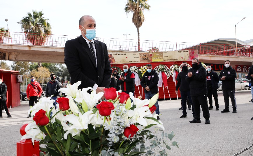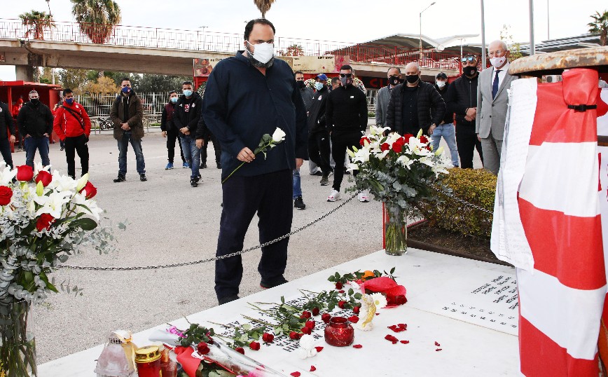 Κάθε χρόνο, στο μνημόσυνο που γίνεται στο μνημείο έξω από το γήπεδο Καραϊσκάκη, υπάρχει πολύς κόσμος. Φέτος, λόγω της γενικότερης κατάστασης με τα μέτρα προστασίας από τον κορονοϊό, δεν μπορούσαν να πάνε πολλοί. Και πάλι, όμως, κάποιοι ήταν εκεί.