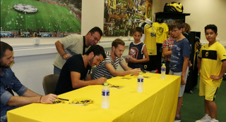 Οι τρεις ποδοσφαιριστές συζήτησαν με μικρούς και μεγάλους που βρέθηκαν στο ΟΑΚΑ, φωτογραφήθηκαν μαζί τους και υπέγραψαν αυτόγραφα στους φιλάθλους που παραβρέθηκαν.