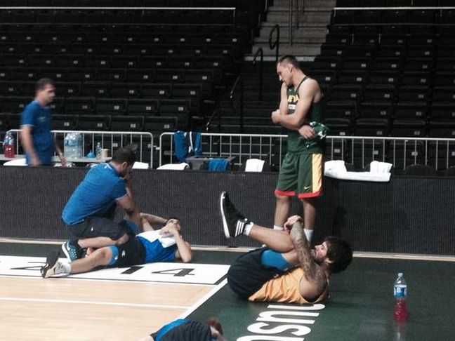 Μάλιστα δεν πέρασαν πολλές ώρες από την άφιξη και μετά από λίγη ξεκούραση και φαγητό, οι παίκτες έπιασαν δουλειά, καθώς έκαναν προπόνηση στη «Ζαλγκίριο Αρένα», που θα φιλοξενήσει το τουρνουά.