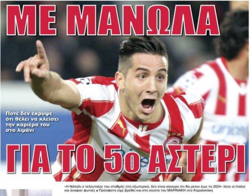 Ο τίτλος είναι «Με Μανωλά για το πέμπτο αστέρι», ενώ αναφέρεται ακόμη ότι «η Νάπολι είναι ο τελευταίος σταθμός στο εξωτερικό, δεν είναι σίγουρο ότι θα μείνει έως το 2024», με την εφημερίδα να επικαλείται δημοσιεύματα από την Ιταλία.