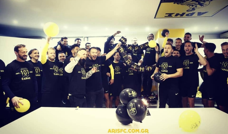Ο Άρης γιορτάζει τα 107α γενέθλιά του και οι παίκτες του έστησαν το δικό τους πάρτι στο γήπεδο.