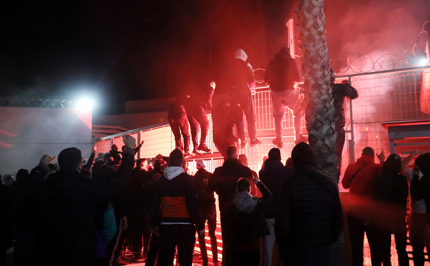 Μάλιστα, οι ενθουσιασμένοι παίκτες βγήκαν από το πούλμαν και συμμετείχαν στους πανηγυρισμούς, φωνάζοντας «Ολυμπιακός, Ολυμπιακός», ενώ πολλοί από αυτούς κατέγραφαν με τα κινητά τους τις στιγμές που εκτυλίχθηκαν.