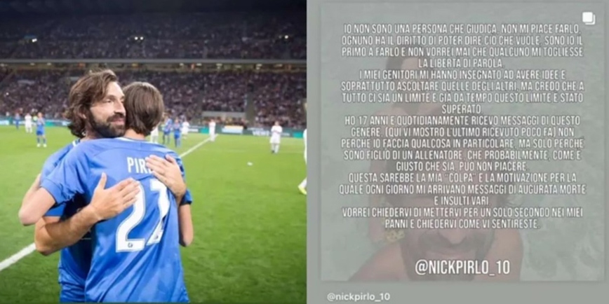 Είμαι 17 ετών και καθημερινά λαμβάνω μηνύματα τέτοιου είδους όχι γιατί έχω κάνει κάτι, αλλά μόνο επειδή είμαι γιος ενός προπονητή που προφανώς δεν αρέσει. Αυτό είναι το “λάθος” μου και ο λόγος για τον οποίον κάθε μέρα μου φτάνουν μηνύματα με απειλές θανάτου και άλλες προσβολές. Θα ήθελα να μπείτε για ένα δευτερόλεπτο στη θέση μου και να δείτε πώς αισθάνομαι», ήταν το περιεχόμενο της ανάρτησης του Νικολό Πίρλο.
