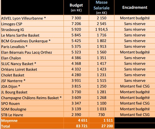 Πρώτη στη λίστα είναι η Βιλερμπάν με συνολικό μπάτζετ 7,3 εκατ. ευρώ και έξοδα για τους παίκτες και το υπόλοιπο τιμ που φτάνουν τα 2,15 εκατ. ευρώ. Το μικρότερο μπάτζετ έχε η Χάβρη με 2,39 εκατ. ευρώ και μισθολόγιο 730.000 ευρώ.