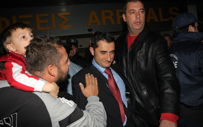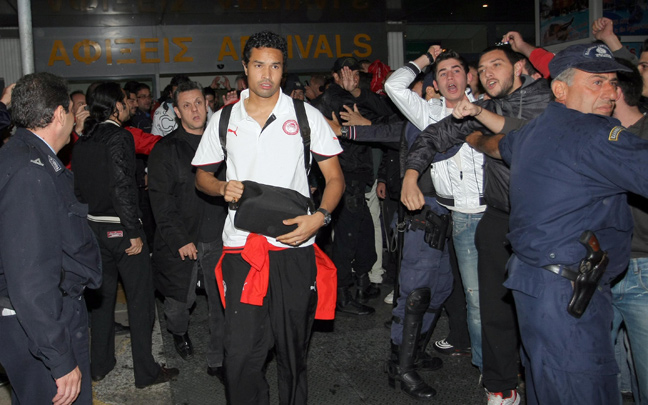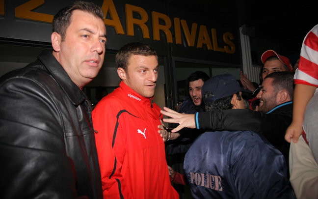 Η πτήση του Ολυμπιακού για την Κρήτη ήταν προγραμματισμένη στις 17:30, αλλά αναχώρησε με είκοσι λεπτά καθυστέρηση. Μετά από 40 περίπου λεπτά, οι «ερυθρόλευκοι» πάτησαν το πόδι τους στο Ηράκλειο και μόλις πέρασαν την πύλη της εξόδου, ο κόσμος δεν κρατήθηκε.