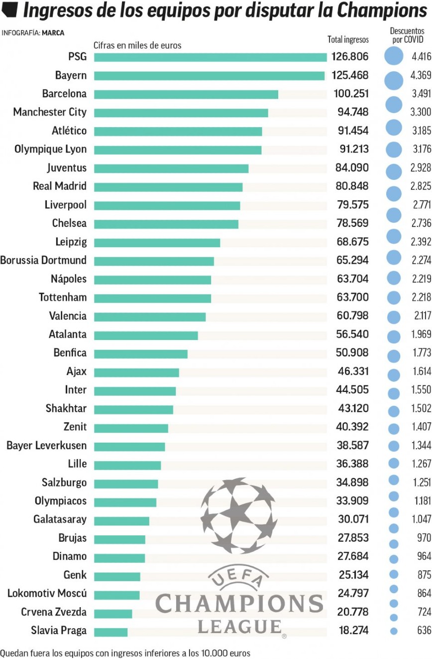 Κάθε χρόνο η ευρωπαϊκή ομοσπονδία δημοσιοποιεί τα ποσά που δόθηκαν στις ομάδες που συμμετέχουν στις διοργανώσεις της και το ίδιο συνέβη και φέτος. Από τη λίστα της UEFA λοιπόν, την οποία δημοσίευσε η ισπανική Marca, προκύπτει ότι οι ερυθρόλευκοι βάζουν στο ταμείο τους φέτος το ποσό των 33.909.000 ευρώ.