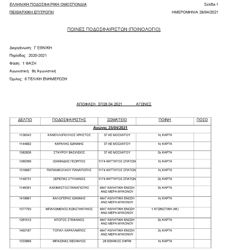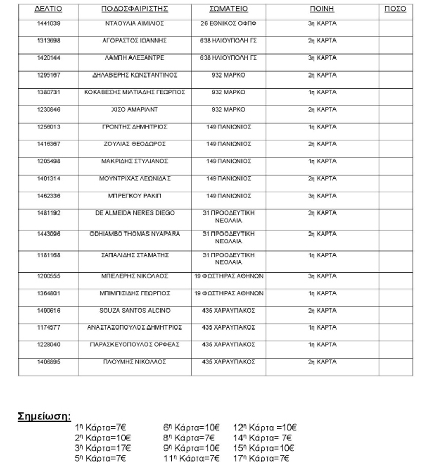 Σύμφωνα με τον κανονισμό, εάν ο αρχηγός κάποιας ομάδας δεν υπογράψει το φύλο αγώνα, κινδυνεύει με τιμωρία του την οποία αποφασίζει η πειθαρχική επιτροπή της ΕΠΟ. Μια πειθαρχική επιτροπη η οποία θα πρέπει να συνεδριάσει και να ενημερώσει εκτός από την Ομοσπονδία, αλλά και τις ίδιες τις ομάδες για τις ποινές που αφορούν τους ποδοσφαιριστές.