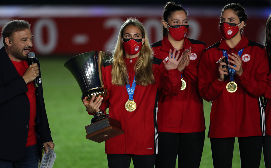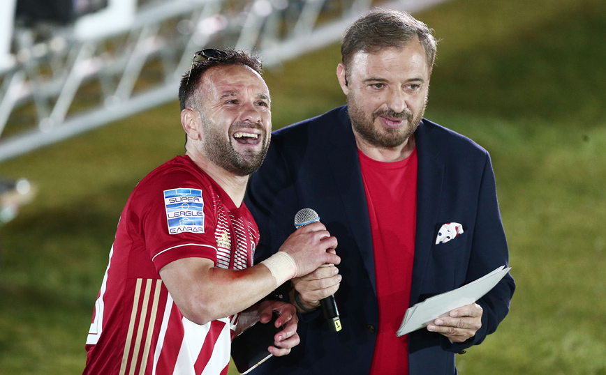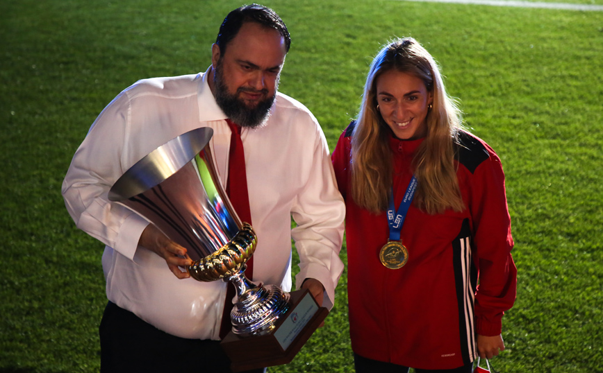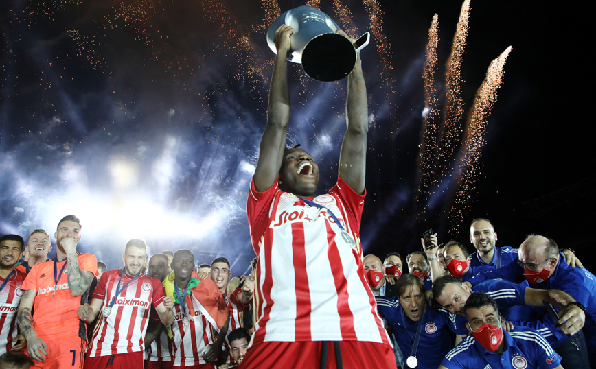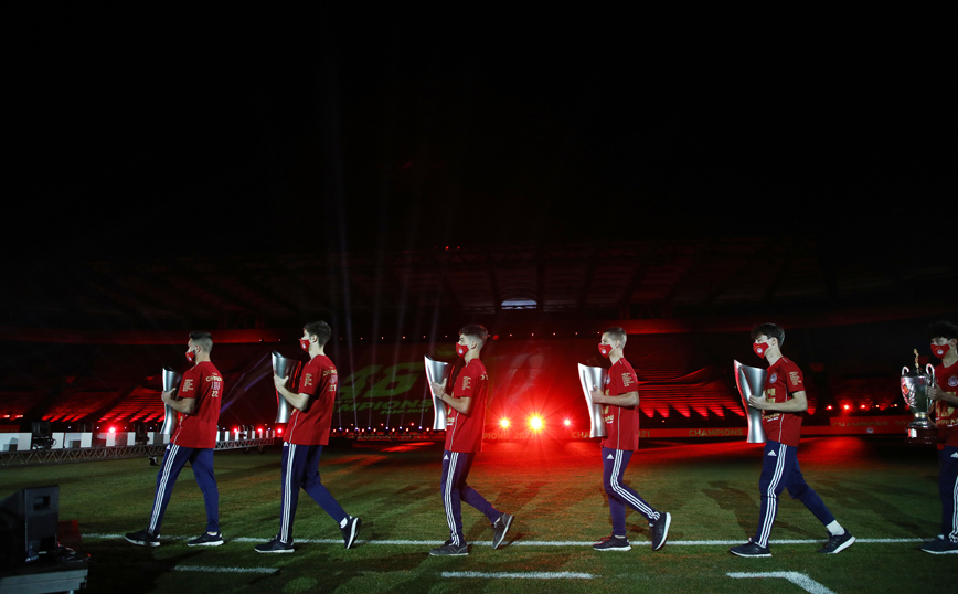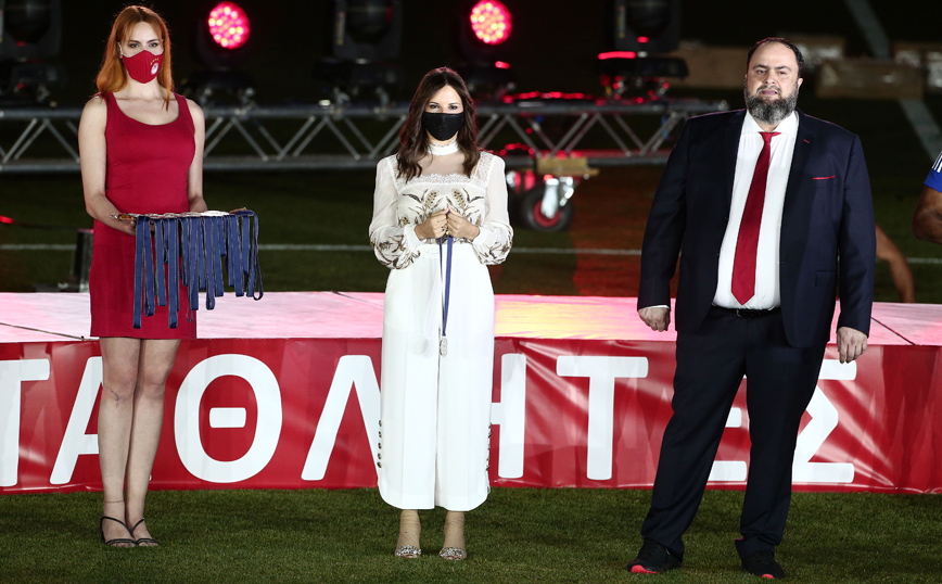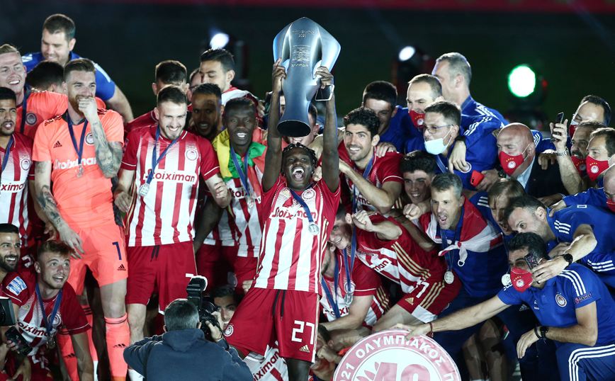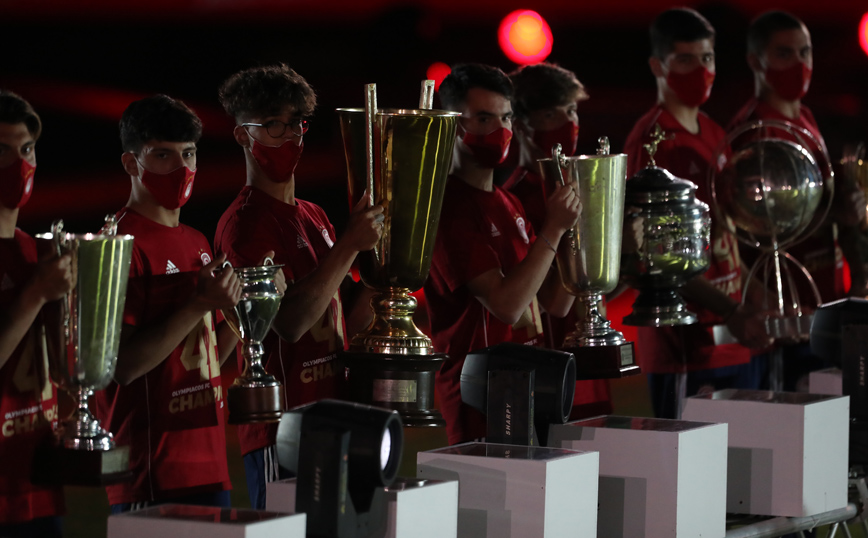 Ο τίτλος είχε εξασφαλιστεί και μαθηματικά, αλλά άπαντες περίμεναν την απονομή του τροπαίου για να το πανηγυρίσουν. Και το πανηγύρισαν. Μπορεί ο κόσμος να απουσίαζε από τις εξέδρες -δίνοντας όμως δυναμικό παρών έξω από το Καραϊσκάκη- αλλά ο Πέδρο Μαρτίνς και οι παίκτες του, μαζί με τον Βαγγέλη Μαρινάκη, έστησαν το δικό τους πάρτι μέσα σε αυτό.