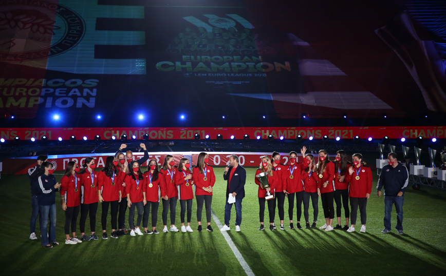 Ένα πάρτι στο οποίο συμμετείχε και η γυναικεία ομάδα πόλο του Ολυμπιακού, η οποία στέφθηκε πρωταθλήτρια Ευρώπης φέτος.