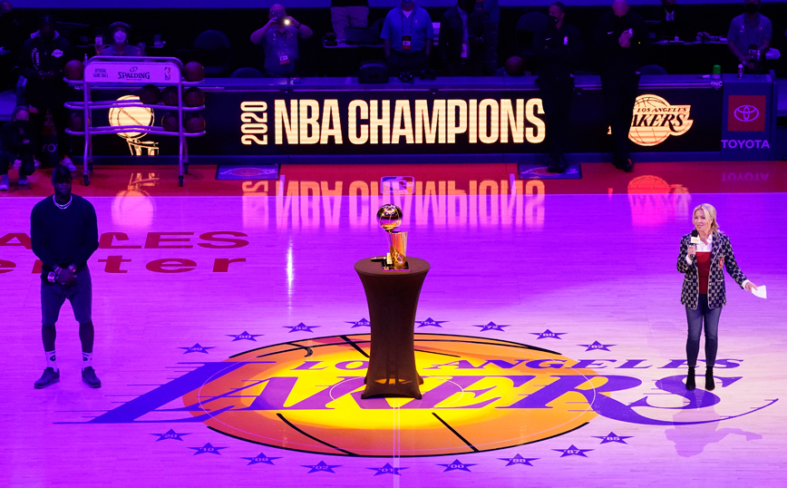 Φυσικά η καθυστέρηση των… αποκαλυπτηρίων έγινε σκόπιμα καθώς οι άνθρωποι των Λέικερς ήθελαν και την παρουσία του κόσμου στο γήπεδο: «Περιμέναμε μέχρι αυτή τη στιγμή γιατί τα banners είναι για τους φιλάθλους μας. Είναι πολύ όμορφο να σας ακούμε και πάλι κοντά μας και να είμαι ξανά μια οικογένεια» ήταν τα λόγια της ιδιοκτήτριας των Λος Άντζελες Λέικερς, Τζίνι Μπας.