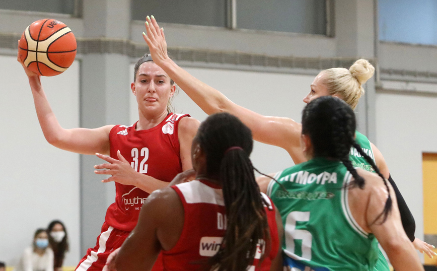 Με την Άννα-Νίκη Σταμολάμπρου να σημειώνει 26 πόντους, η ομάδα του Πειραιά έφτασε άνετα στο 2-1 στη σειρά των τελικών, καθώς μεταφέρονται και οι μεταξύ τους νίκες από την κανονική περίοδο. Έτσι, χρειάζεται ακόμη ένα ροζ φύλλο αγώνα για την κατάκτηση του 6ου διαδοχικού τίτλου πρωταθλητή Ελλάδας και 7ου στο σύνολο.