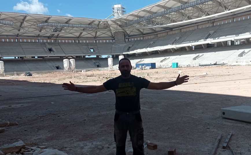 Η τύχη τα έφερε έτσι, ώστε ο Μπακαούκας να βρίσκεται στον χώρο που κάθε υποστηρικτής της ΑΕΚ θα ήθελε να βάλει έστω ένα… λιθαράκι. Την «OPAP Arena – Αγιά Σοφιά», στην οποία πήγε με την εταιρία που εργάζεται στο υπό ανέγερση γήπεδο της ποδοσφαιρικής ομάδας στη Νέα Φιλαδέλφεια, στα πλαίσια μιας εργασίας τοποθέτησης ραμπών για να μπαίνουν τα μηχανήματα.