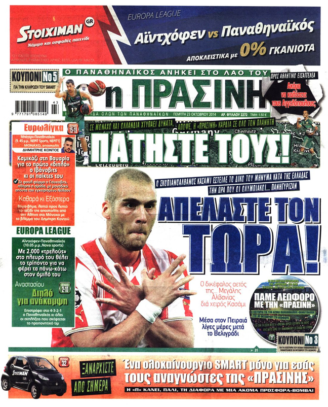 (Η Ώρα για Σπορ δεν είχε αναφορά στο πρωτοσέλιδο της για το παιχνίδι)