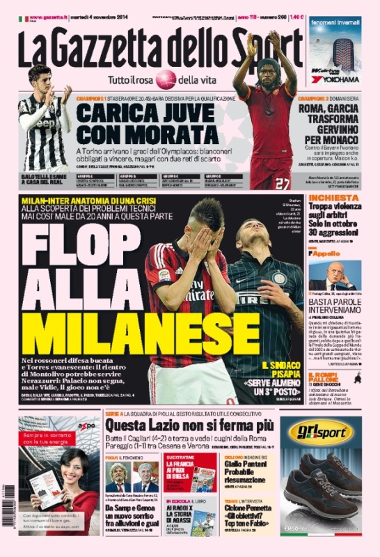 Σε αντίστοιχο, αλλά όχι τόσο… προστακτικό ύφος η Gazzetta Dello Sport. «Καθοριστικός αγώνας για πρόκριση για τη Γιουβέντους. Οι Έλληνες ήρθαν στο Τορίνο και οι ‘μπιανκονέρι’ είναι υποχρεωμένοι να νικήσουν, ει δυνατόν και με 2-0».