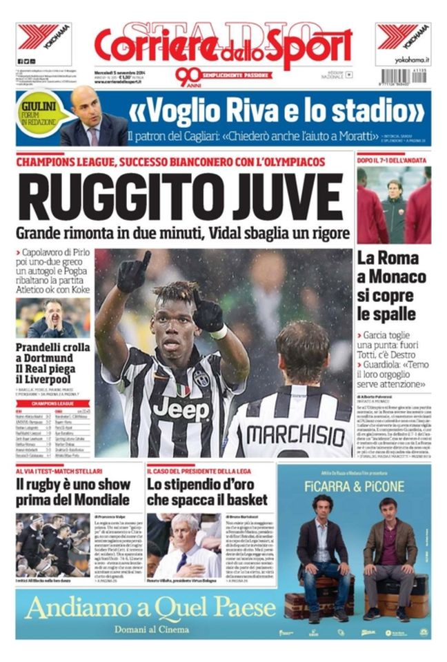 Τέλος, η Corriere della Sera έχει και αυτή την ίδια φωτογραφία του Πογκμπά και αναφέρει: «Νίκησε τον Ολυμπιακό», ενώ συνεχίζει: «Η Γιουβέντους υπέφερε, σηκώθηκε και νίκησε με 3-2»!
