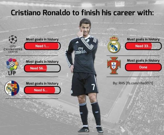 Καταρχάς, σε αντίθεση με τον Αργεντινό (που βρίσκεται ήδη στην πρώτη θέση των σκόρερ της Μπαρτσελόνα) ο Ρονάλντο χρειάζεται 33 ακόμα γκολ για να ξεπεράσει τους Ντι Στέφανο και Ραούλ και να πετύχει το ίδιο στη Ρεάλ.