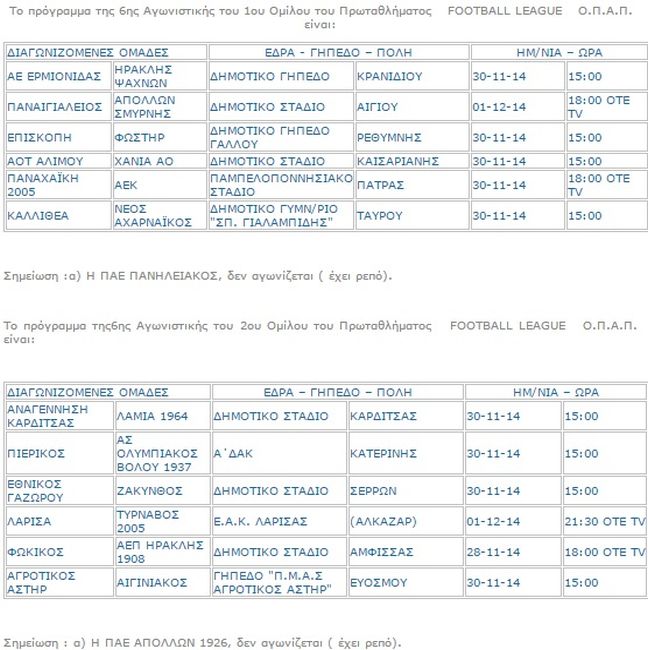 Δράση και… επίσημα στη Football League, καθώς η διοργανώτρια αρχή ανακοίνωσε το πλήρες πρόγραμμα της έκτης αγωνιστικής στους δύο ομίλους.