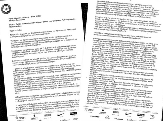 Μάλιστα, ο πρόεδρος της Ομοσπονδίας γνωστοποιεί ότι έχει ενημερώσει ήδη εγγράφως τη FIFA και την UEFA για το επίμαχο νομοσχέδιο.