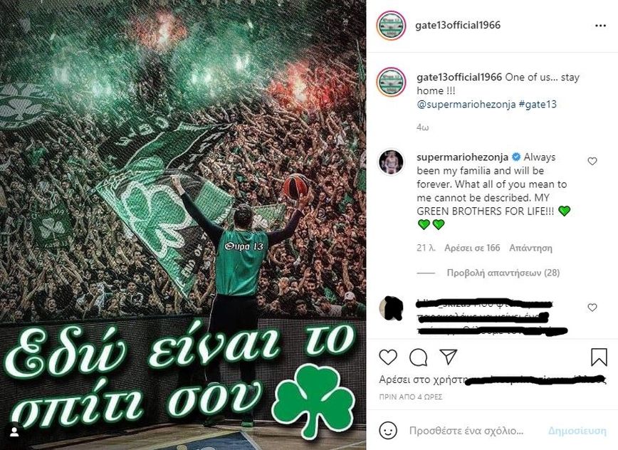 Την ώρα που τα πάντα παραμένουν ανοικτά όσον αφορά την παραμονή του Μάριο Χεζόνια στον Παναθηναϊκό, ο Κροάτης φόργουορντ προχώρησε σε μια… αινιγματική απάντηση σε ανάρτηση των οργανωμένων της ομάδας του.