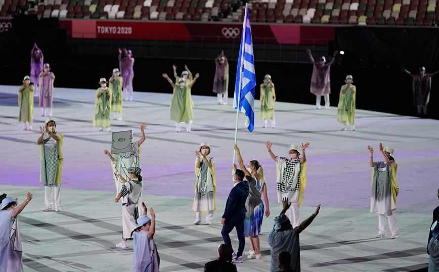 Η ελληνική αποστολή μπήκε πρώτη στο Ολυμπιακό Στάδιο του Τόκιο στην τελετή έναρξης των Ολυμπιακών Αγώνων.
